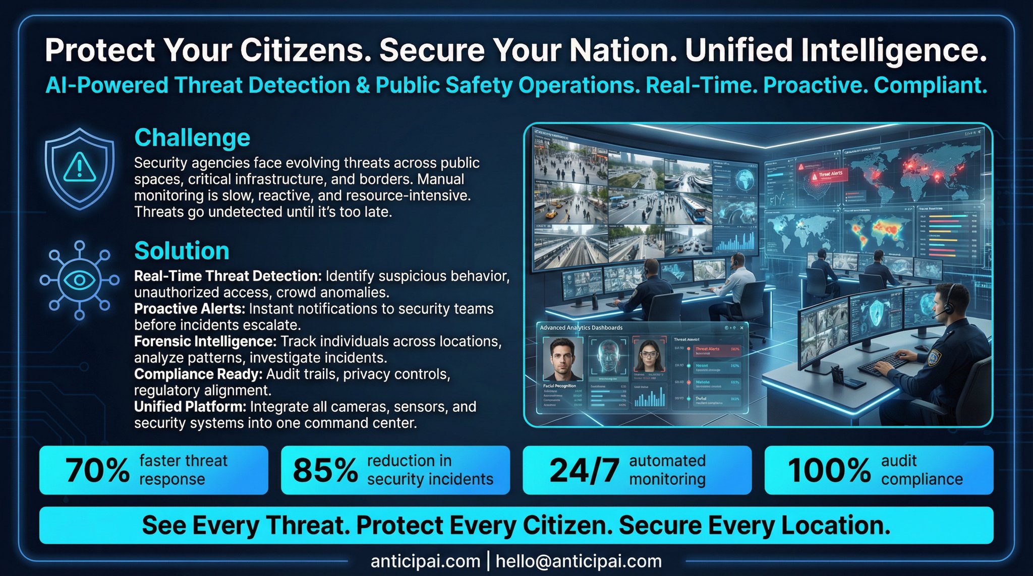 Get started with AnticipAI. It allows you to create complex designs by combining and customizing all business security processes.